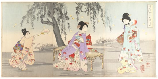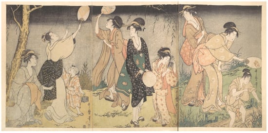 (T186). Catching fireflies (Hotaru gari). ca. 1796–97. Kitagawa Utamaro (Japanese, ca. 1754–1806). Triptych of woodblock prints; ink and color on paper. Rogers Fund, 1914. Accession Number: JP151. The Metropolian Museum of Art, New York, NY, USA, www.metmuseum.org (accessedon 4 January 2022). Open access image, CC0.