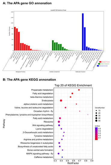 Through GO analysis and KEGG analysis, it can be seen that the protein encoded by the APA gene bears important biological functions and strictly controls the process of cell metabolism. The in-depth study of APA mechanisms has a guiding significance for regulating metabolism and changing traits.