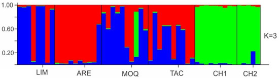 - Evanno, G.; Regnaut, S.; Goudet, J. Detecting the number of clusters of individuals using the software STRUCTURE: A simulation study. Mol. Ecol. 2005, 14, 2611–2620. [Google Scholar] [CrossRef]