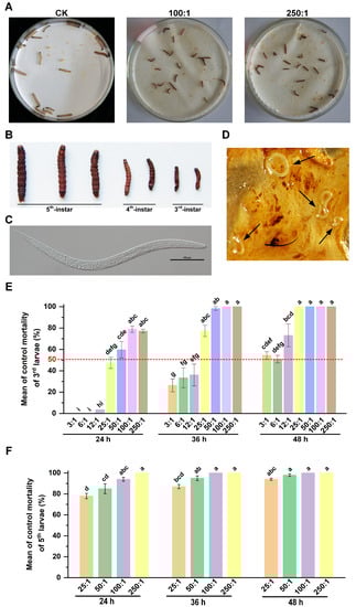 APA StyleChen, Y., Long, H., Jin, T., Peng, Z., Sun, Y., & Feng, T. (2023). Potential of Entomopathogenic Nematode HbSD as a Candidate Biocontrol Agent against Spodoptera frugiperda. Insects, 14(1), 2. https://doi.org/10.3390/insects14010002