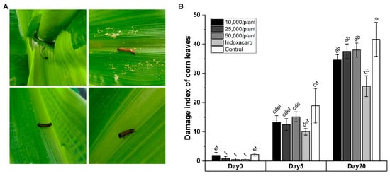 - Acharya, R.; Hwang, H.S.; Mostafiz, M.M.; Yu, Y.S.; Lee, K.Y. Susceptibility of various developmental stages of the fall armyworm, Spodoptera frugiperda, to entomopathogenic nematodes. Insects 2020, 11, 868. [Google Scholar] [CrossRef] [PubMed]