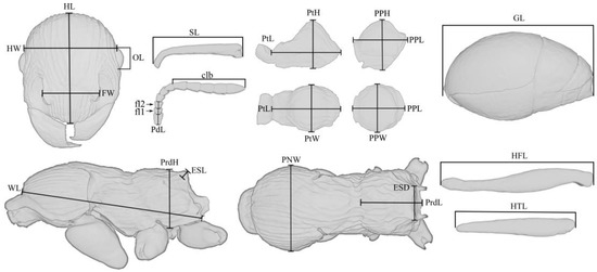 HL—head length, maximum length of the head, measured from the posterior margin of the head to the anterior-most extremity of the clypeus;