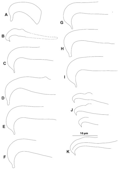 - Ehara, S.; Gotoh, T. Two new species of Oligonychus closely related to Oligonychus gotohi Ehara (Acari: Tetranychidae). Int. J. Acarol. 2007, 33, 15–20. [Google Scholar] [CrossRef]
