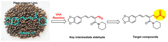 Design of target compounds from piperine (1) via the VHA reaction.