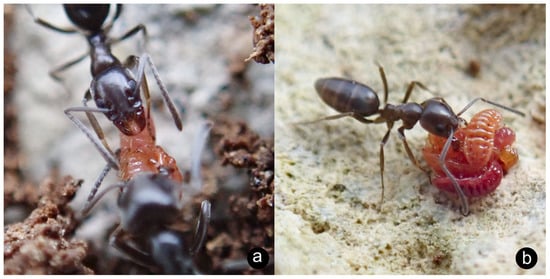 - Lachaud, J.-P.; Passera, L. Données sur la biologie de trois Diapriidae myrmécophi-les: Plagiopria passerai Masner, Solenopsia imitatrix Wasmann et Lepidopria pedestris Kieffer. Insectes Soc. 1982, 29, 561–567. [Google Scholar] [CrossRef]