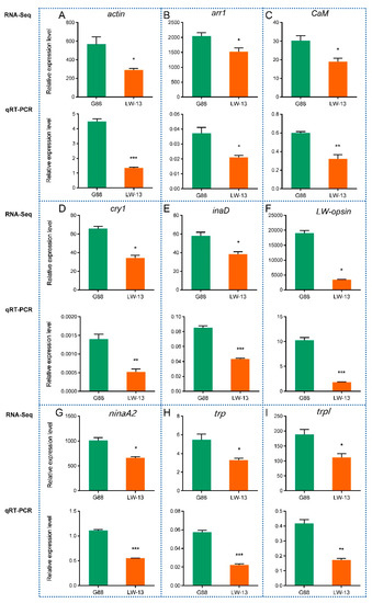3.6. RT-qPCR Validation of DEGs in the Phototransduction Pathway