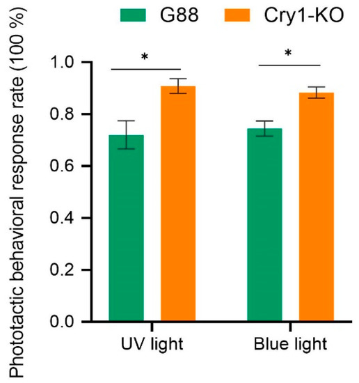 3.7. The Effects of cry1 Mutation on Phototactic Behavior of P. xylostella
