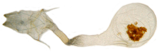 - Eberhard, W.G. Sexual Selection and Animal Genitalia; Harvard University Press: Cambridge, MA, USA, 1985. [Google Scholar]