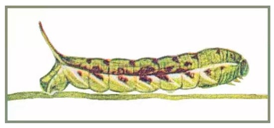 - Mell, R. Biologie und Systematik der Südchinesischen Sphingiden: Zugleich ein Versuch einer Biologie Tropischer Lepidopteren Überhaupt; Friedländer & Sohn: Berlin, Germany, 1922; Volume 1. [Google Scholar]