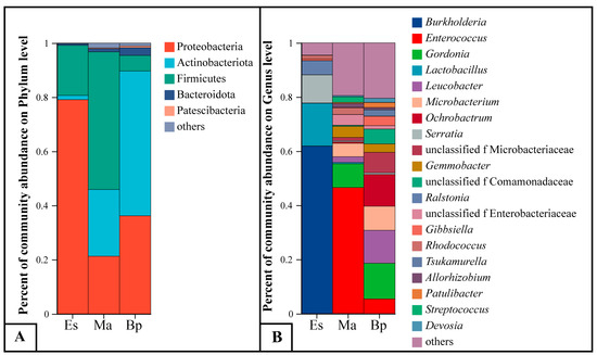 - Chen, B.S.; Du, K.Q.; Sun, C.; Vimalanathan, A.; Liang, X.L.; Li, Y.; Wang, B.H.; Lu, X.M.; Li, L.J.; Shao, Y.Q. Gut bacterial and fungal comm-unities of the domesticated silkworm (Bombyx mori) and wild mulberry-feeding relatives. ISME J. 2018, 12, 2252–2262. [Google Scholar] [CrossRef] [PubMed]