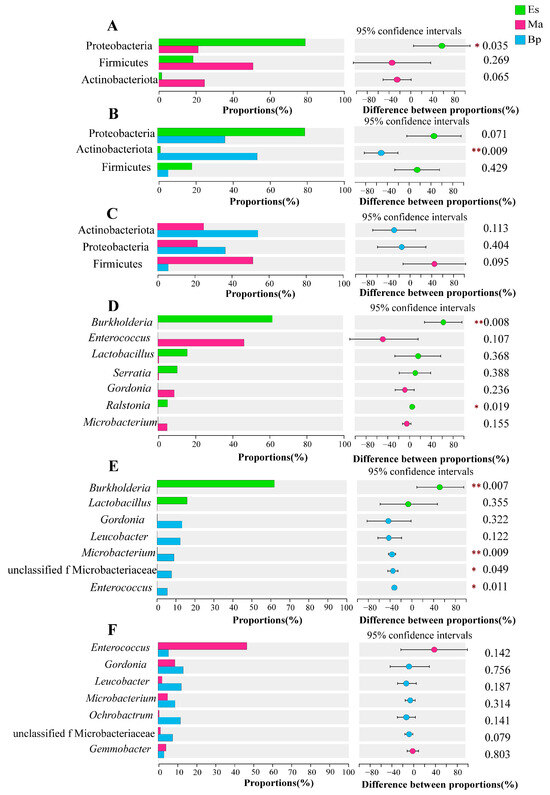 - Wang, X.; Wang, H.; Zeng, J.; Cui, Z.; Geng, S.; Song, X.; Zhang, F.; Su, X.; Li, H. Distinct gut bacterial composition in Anoplophora glabripennis reared on two host plants. Front. Microbiol. 2023, 14, 1199994. [Google Scholar] [CrossRef]