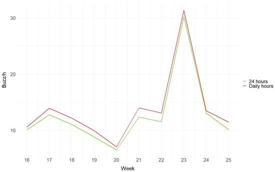 3.2. Hourly and Weekly Variation of Buzzes