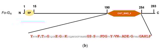 Figure 1a indicates that Fo-GN is very similar to GN counterparts in lepidopterans, hymenopterans, and coleopterans. Figure 1b shows the protein domain structure of Fo-GN, with a chitin-binding domain, which features a RR1 consensus.