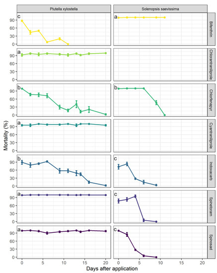 do Carmo DG, Costa TL, Santana Júnior PA, Santana WC, Marsaro Júnior AL, Pereira PS, Santos AA, Picanço MC. Efficacy and Residual Toxicity of Insecticides on Plutella xylostella and Their Selectivity to the Predator Solenopsis saevissima. Insects. 2023; 14(2):98. https://doi.org/10.3390/insects14020098
