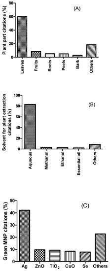 Given the foregoing, it is critical to seek appropriate formulations and/or stabilization methods for extending the effectiveness and persistence of plant-based insecticides and products derived from them [177]. One of the most promising approaches for this purpose is the use of plant extracts and their selected constituents as reducing and capping/stabilizing agents in the synthesis of green metal and metal oxide nanoparticles. Notably, this approach refers to “green synthesis of metallic nanoparticles”, i.e., the preparation of different metallic nanoparticles from bioactive compounds such as plants and plant extracts, microorganisms, and enzymes [178]. Green synthesis is a biological method that respects the environment by avoiding the handling of toxic chemical compounds. It requires the use of a “green” solvent, an ecological reducing agent, and eventually a non-toxic stabilizing agent [179]. Additionally, green nanosynthesis enables the use of low-cost agricultural wastes (e.g., fruit peels and extraction process residues), invertebrate byproducts (e.g., chitosan from crab shells), and fungal extracellular filtrates as reliable sources of reducing agents [180].