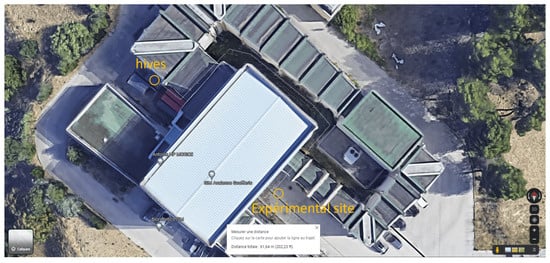 Geolocaltion of hives (43°14′02.9″ N 5°26′37.3″ E) and experimental site in the Parc National des Calanques, Marseilles, France. Both are separated by a 60 m path, and bees pass through it in at least 3 min.