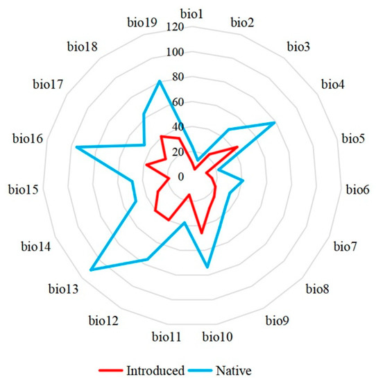 3.1. Climatic Predictors Responsible for the Niche Dynamics