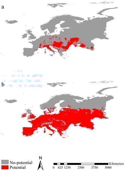 3.3. Potential Ranges of the Fall Webworm in Europe and Those in North America