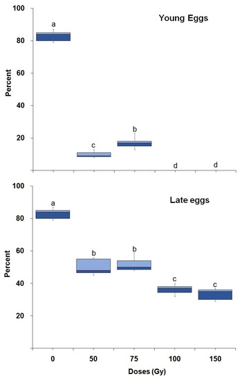 | Doses (Gy) | Flooding Ratio Im:Um:Uf | Late Eggs | Mature Larvae | Pupae | ||||||