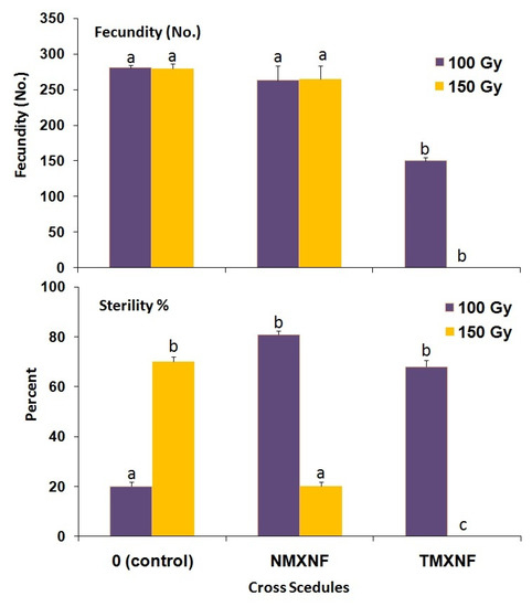 - Jiang, S.; He, L.M.; He, W.; Zhao, H.Y.; Yang, X.M.; Yang, X.Q.; Wu, K.M. Effects of X-ray irradiation on the fitness of the established invasive pest fall armyworm Spodoptera frugiperda. Pest Manag. Sci. 2022, 78, 2806–2815. [Google Scholar] [CrossRef]
