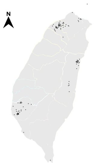 - Fu, Y.S.; Yeh, W.B.; Chang, M.L.; Wu, F.S.; Chen, Y.Y.; Cheng, C.C. Necrophagous dipterans in the Kaohsiung and Pintung areas. Formos. Entomol. 2002, 2, 381–390. [Google Scholar]