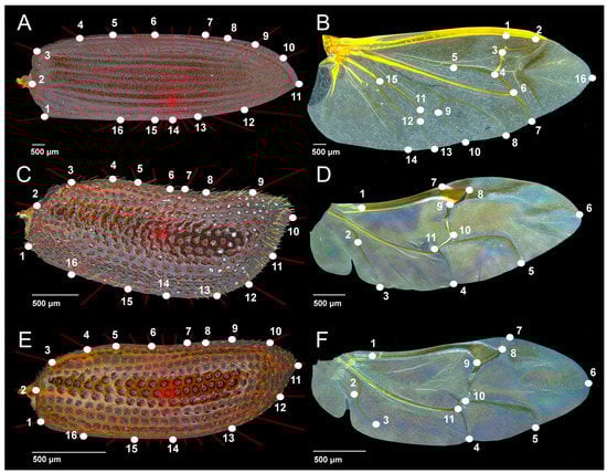 - Lorenz, C.; Almeida, F.; Almeida-Lopes, F.; Louise, C.; Pereira, S.N.; Petersen, V.; Vidal, P.O.; Virginio, F.; Suesdek, L. Geometric morphometrics in mosquitoes: What has been measured? Infect. Genet. Evol. 2017, 54, 205–215. [Google Scholar] [CrossRef]