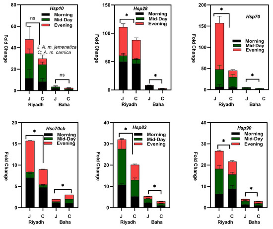 - Alqarni, A.S.; Ali, H.; Iqbal, J.; Owayss, A.A.; Smith, B.H. Expression of heat shock proteins in adult honey bee (Apis mellifera L.) workers under hot-arid subtropical ecosystems. Saudi J. Biol. Sci. 2019, 26, 1372–1376. [Google Scholar] [CrossRef]