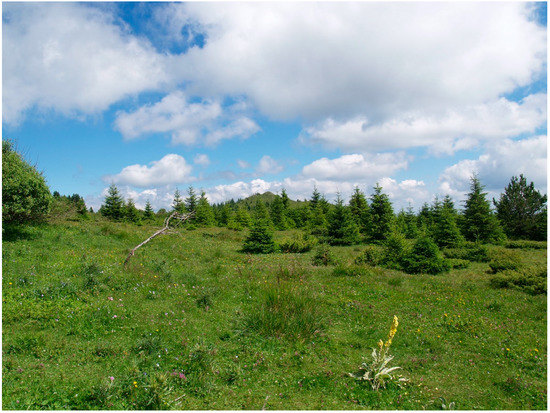 The habitat of H. serbica sp. nov. holotype Mt. Kopaonik, Serbian Alps, Srebrenac, 1600 m, shown in Figure 13, is positioned above the line of beech forest. It consists of sub-Alpine bushy clearings in the spruce forest zone.