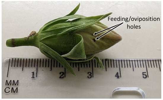 3.2.2. Collected Hibiscus Buds: HBW Feeding/Oviposition Holes