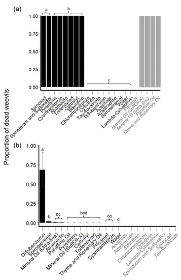 - Abbott, W.S. A Method of Computing the Effectiveness of an Insecticide. J Econ. Entomol. 1925, 18, 265–267. [Google Scholar] [CrossRef]