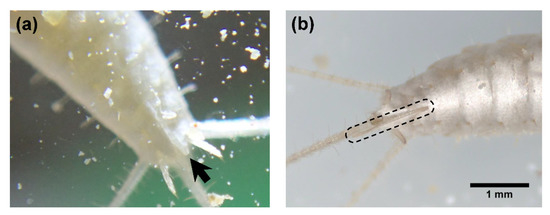 - Ito, S.; Machida, R. Zygentoma. In Illustrated Technical Manual for PC in Japan; Okutani, T., Miyazawa, H., Yano, S., Tuji, H., Matuo, M., Ito, T., Muto, A., Tanikawa, T., Motoki, M., Benitani, I., Eds.; Japan Pest Control Association: Tokyo, Japan, 2001; Volume 5, pp. 103–120. (In Japanese) [Google Scholar]