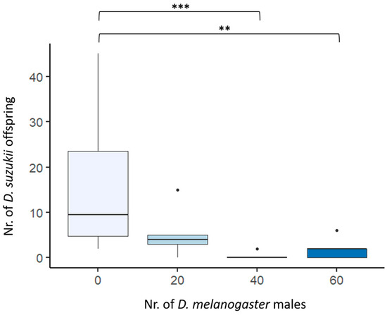 3.2. Experiment 2: Insemination between D. suzukii and D. melanogaster