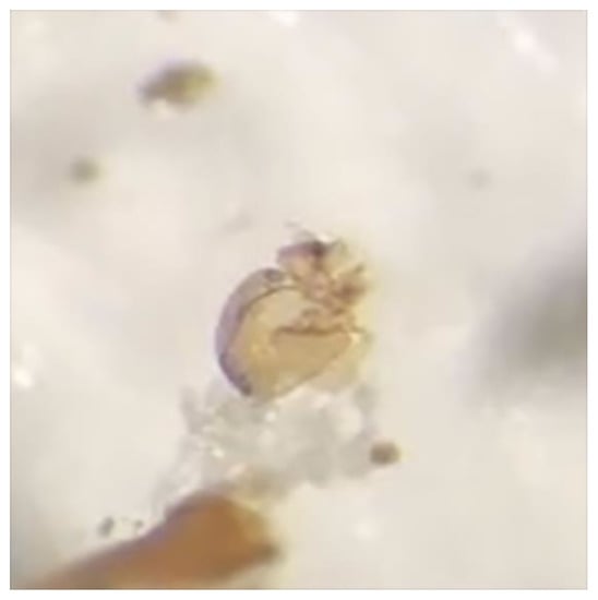Head capsule of parasitized Ceutorhynchus larvae collected in a silique of wormseed wallflower, Erysimum cheiranthoides.