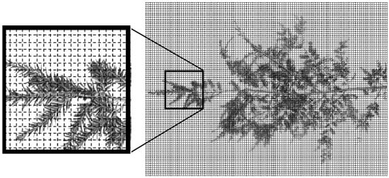 One of the most important steps in integrated pest management (IPM) is sampling to estimate the population density of a target pest, delimit its distribution, and determine where to apply control measures [15]. Because counting individual A. tsugae or its ovisacs on an entire tree is not feasible, sampling from an A. tsugae population is commonly used to estimate its density. Depending on the size and nature of the sampling unit, the sampling techniques used, the number of samples required, the spatial pattern of the sample layout, and the sampling timing can be determined [15]. In general, a sampling unit is determined based on multiple criteria (e.g., consistency, suitable size, stability, and the possibility of delineation in the field), including a balance between cost and precision [16,17,18].