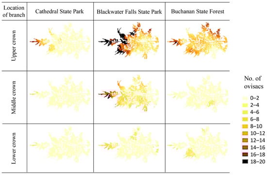Example within-tree distribution of A. tsugae ovisacs at three study sites.