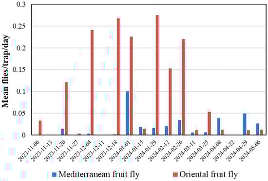 | No. Oriental Fruit Fly Adults | No. Mediterranean Fruit Fly Adults | ||||