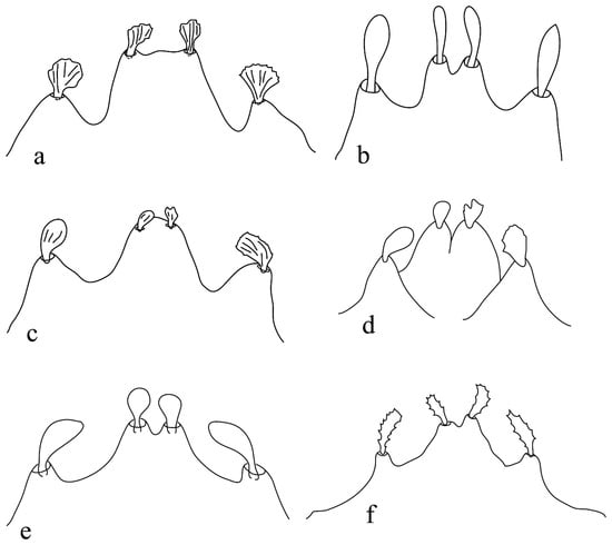 3.2.3. Distance and Position of Setae f1 and f2 and Position of Setae c3
