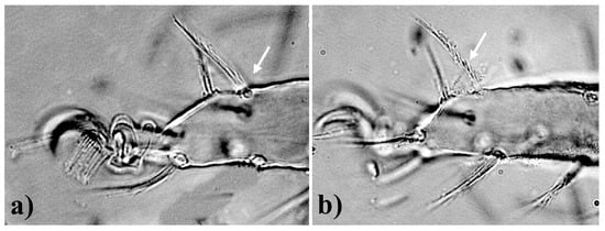 3.3.2. Characteristic State of Solenidion and Tactile Setae on Tarsus III and IV