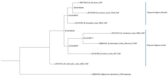 3.4. Phylogenetic Relationship of the Proposed Subgeneric Divisions