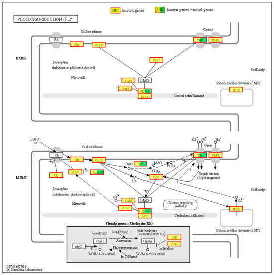 3.5. Gene Function Annotation Based on Phototransduction-Fly Pathway