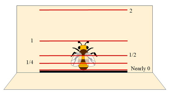 As the distance approaches 0, the detected bees’ action is from or to the upper edge of the beehive entrance. This position of the detection line can be utilized for the box method, so that the line can be fixed in this position whose distance is nearly 0 to the beehive entrance. The length of the left and right detection lines varies with the position of the topmost detection line. Similar to the testing rules of the single-line method, the box method only needs to adjust the position of the topmost detection line. Similar to the selection of detection line positions in the single-line method, multiple detection box positions were set (Figure 12). The 1/2 distance from the topmost detection line to beehive distance achieves F1in of 96.51% and F1out of 93.08%, and the proper distance is also 1/2 (Table 8).