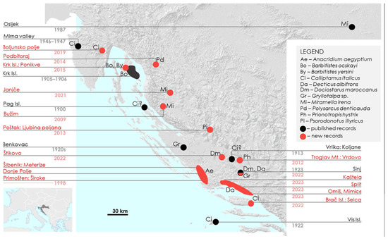 Langhoffer [25] briefly mentioned that an unidentified species of a cricket belonging to the genus Gryllus Linnaeus, 1758 [20] caused damage in a garden in Baška on Krk Island and that a species of the genus Gryllotalpa Latreille, 1802 [50] caused damage to multiple sapling nurseries in Benkovac.