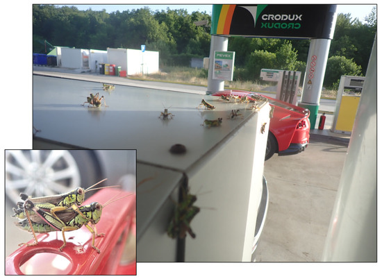 Kovačević [27] notes that Anacridium aegyptium is a minor pest affecting tobacco, and that it only ever appears in small numbers. In general, A. aegyptium produces very sporadic and localized outbreaks that damage vineyards [53,54]. Here, we report a nearly forgotten outbreak of this species—the first for the Balkans.