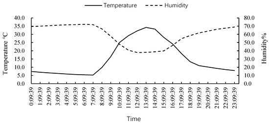 Temperature and humidity in the greenhouse on the day when predation experiments were performed.