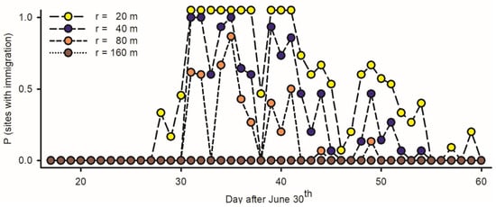 Tools available to approximate Ω include estimates of pest abundance before the emergence of adults, modeling seasonal flight patterns in LTs, and the mark–release of adults [4,8,9,37,47,48,51,70].