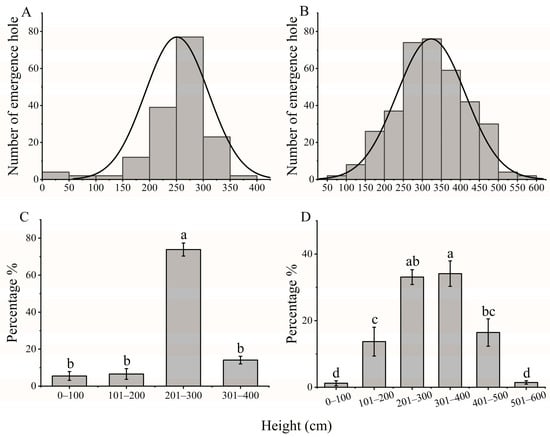 2.3.1. Spatial Distributions of Frass and Emergence Holes