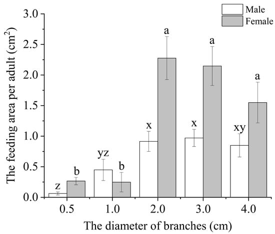 3.1.2. Bark Consumption by ALB Adults on Branches with Different Diameters