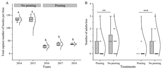 2.5. Control Effectiveness of High Trunk Truncation for ALB in Different Areas