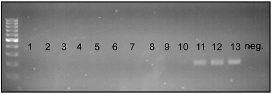 - Bell, D.A.; DeMarini, D.M. Excessive cycling converts PCR products to randomlength higher molecular weight fragments. Nucleic Acids Res. 1991, 19, 5079. [Google Scholar] [CrossRef] [PubMed][Green Version]