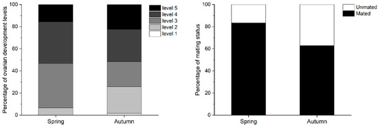 Ovarian development status of trapped Spodoptera litura females in peak days during the spring and autumn migration periods.